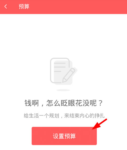2、然后在进入了预算设置页面后,点击下方“预算设置”选项,准备去填写自己这个月的预算金额。