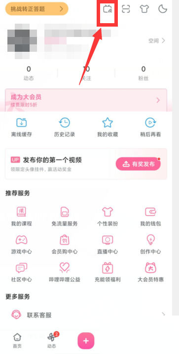 2、然后在我的页面,点击上方的【图标】。(如图所示)